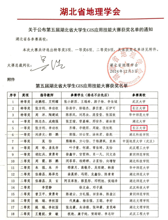 承办的第五届湖北省大学生GIS应用技能大赛于武汉理工大学成功举办。11月22日至24日,由中国地理学会、中国地理信息产业协会主办“第十三届全国大学生GIS应用技能大赛”在兰州交通大学成功举办。91自拍李功权、张方利两位老师指导的2022级地理信息科学专业学生团队代表91自拍